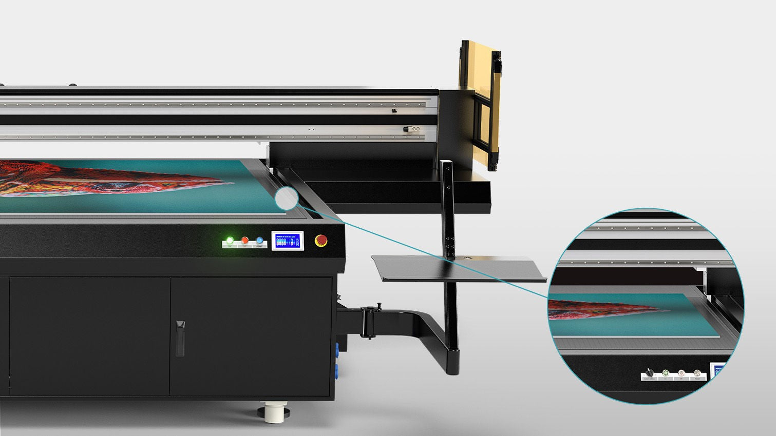 industrial-scale printing. With its robust construction, superior print quality, and versatility, it is ideal for businesses producing custom signage, packaging, and specialty graphics on a variety of rigid and flexible substrates.